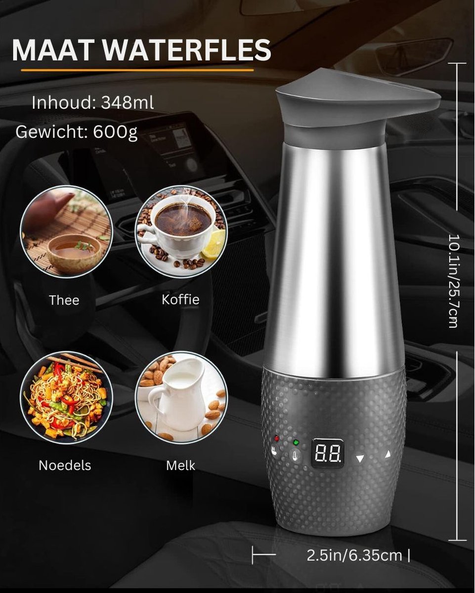Ben je regelmatig onderweg en mis je de luxe van een warm drankje? Of je nu vaststaat in de file, een lange autorit maakt of even een pauze neemt langs de weg, deze Waterkoker 12V voor Auto biedt de perfecte oplossing. Met dit slimme apparaat verwarm je snel en eenvoudig water, zodat je altijd kunt genieten van je favoriete thee, koffie of ander warm drankje — zonder je auto te hoeven verlaten.