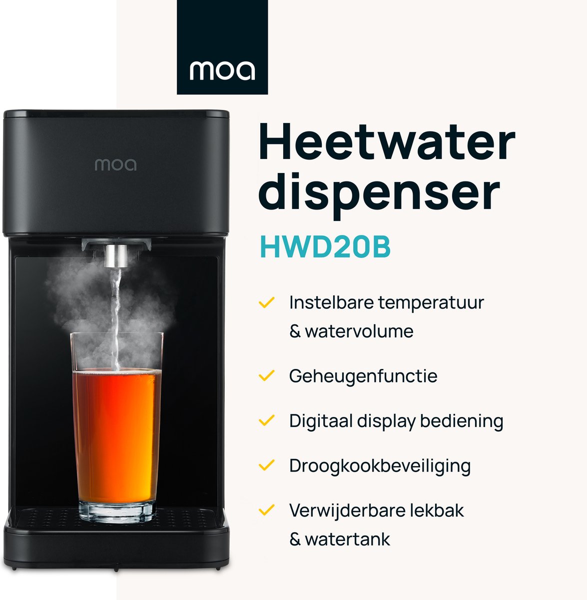 Of je nu snel een kopje koffie wilt zetten, je baby een flesje snel wil opwarmen of groenten en pasta in een mum van tijd wil koken – de MOA HWD20B heetwaterdispenser staat altijd klaar voor gebruik. Dankzij de automatische uitschakeling en energiebesparende functies is dit apparaat niet alleen veilig en handig, maar ook milieuvriendelijk. Een echte must-have voor iedereen die het comfort van heet water snel, veilig en eenvoudig wil benutten.