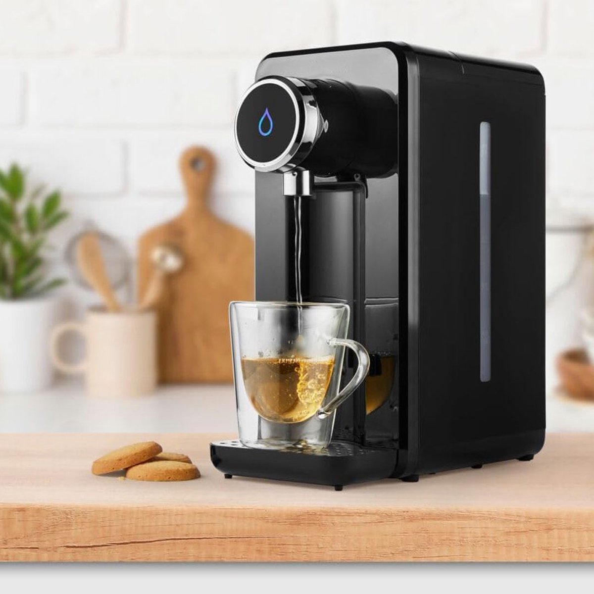 De Luxe Heetwaterdispenser Zwart is ontworpen om de ergernissen van wachten op kokend water weg te nemen en tegelijkertijd een moderne uitstraling toe te voegen aan de keuken. Met een 2,5-liter reservoir kun je meerdere kopjes achter elkaar zetten zonder tussentijds bij te vullen, wat handig is voor gezinnen of kleine kantoren. Het toestel heeft een hoogglans zwarte afwerking met roestvrijstalen details, wat het esthetisch aantrekkelijk maakt en makkelijk te combineren met hedendaagse keukendecors. Het bedieningsconcept is bewust eenvoudig gehouden: één druk op de knop en heet water stroomt direct uit de kraan. Dat minimaliseert foutkansen en zorgt voor een korte leercurve voor alle gebruikers.